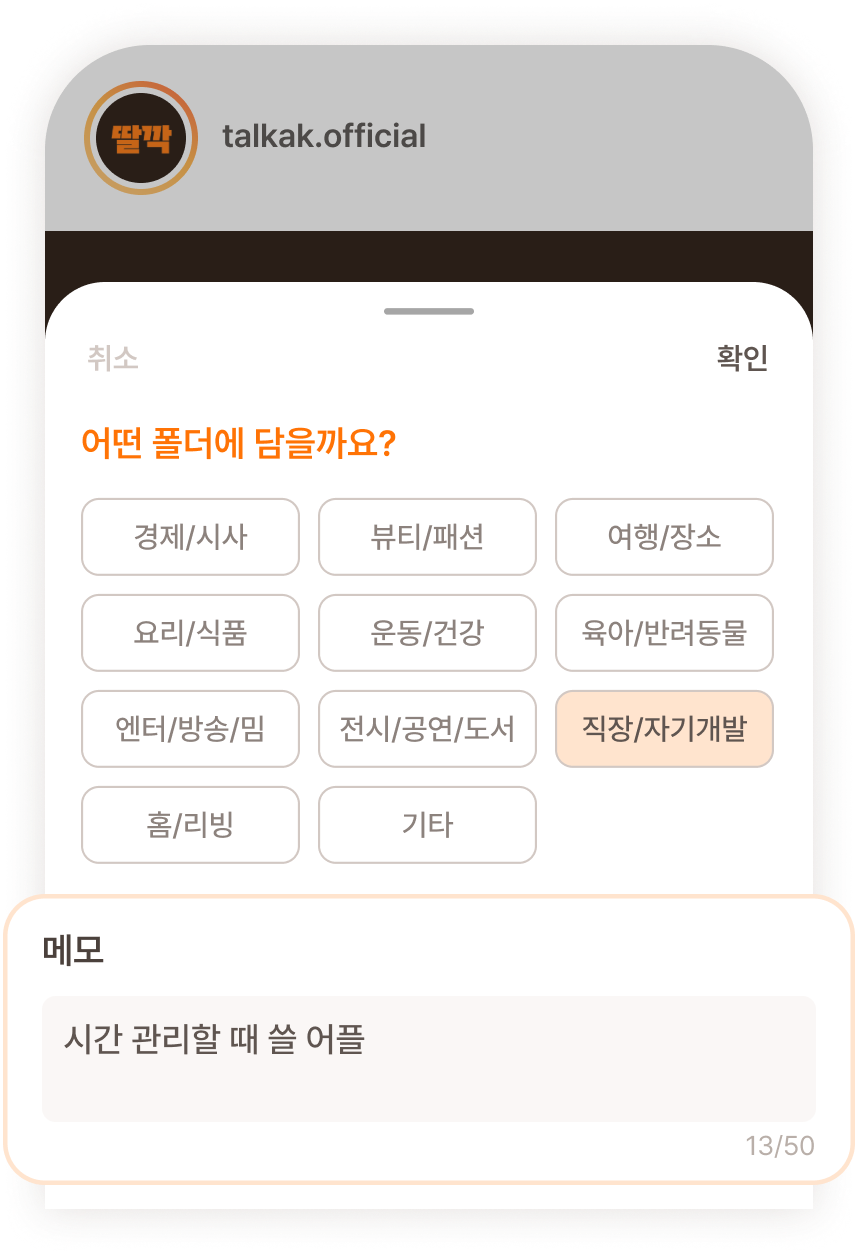 저장하고 싶은 콘텐츠를 딸깍에 공유해보세요!